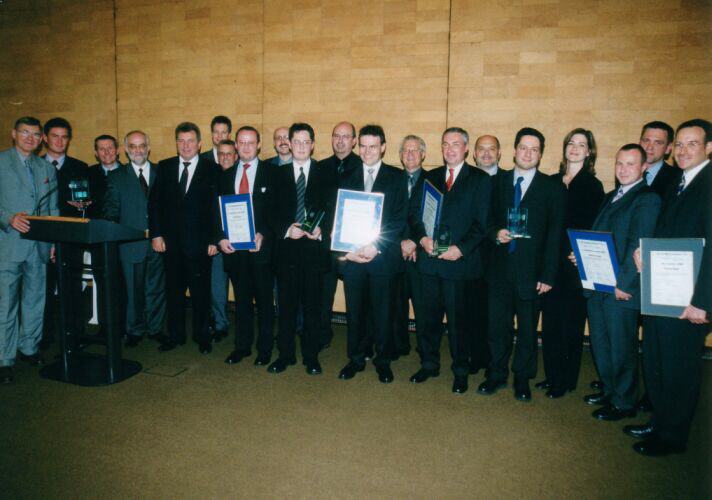- mit der Jury und dem Wirtschaftsminister im Festsaal der Kongresshalle. Die ausgezeichneten Unternehmen BMW, DaimlerChrysler, Mahle mit ihren beteiligten IT-Dienstleistern.
