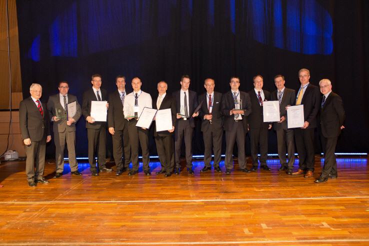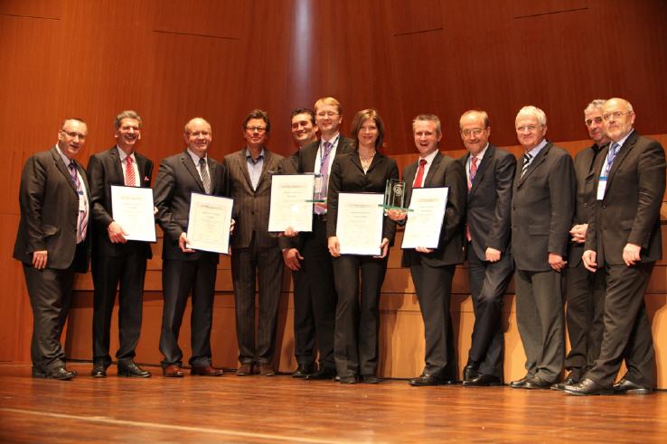 mit der Jury 2013 von links nach rechts: Rolf Haberlandt, Dominik Ramms und Reinhard de Fries von Volswagen Wolfsburg, Horst Ritze (Ford), Markus Kunz von Volkswagen Sachsen, Dietke Clauß von Carnet, Dr. Jörg Blechinger (Magna), Prof. Dr. Klaus-J. Schmidt, Szilard Foeldes und Roland Becker von der Knorr Bremse, Jürgen Löhle von Consilio und Jürgen Barke